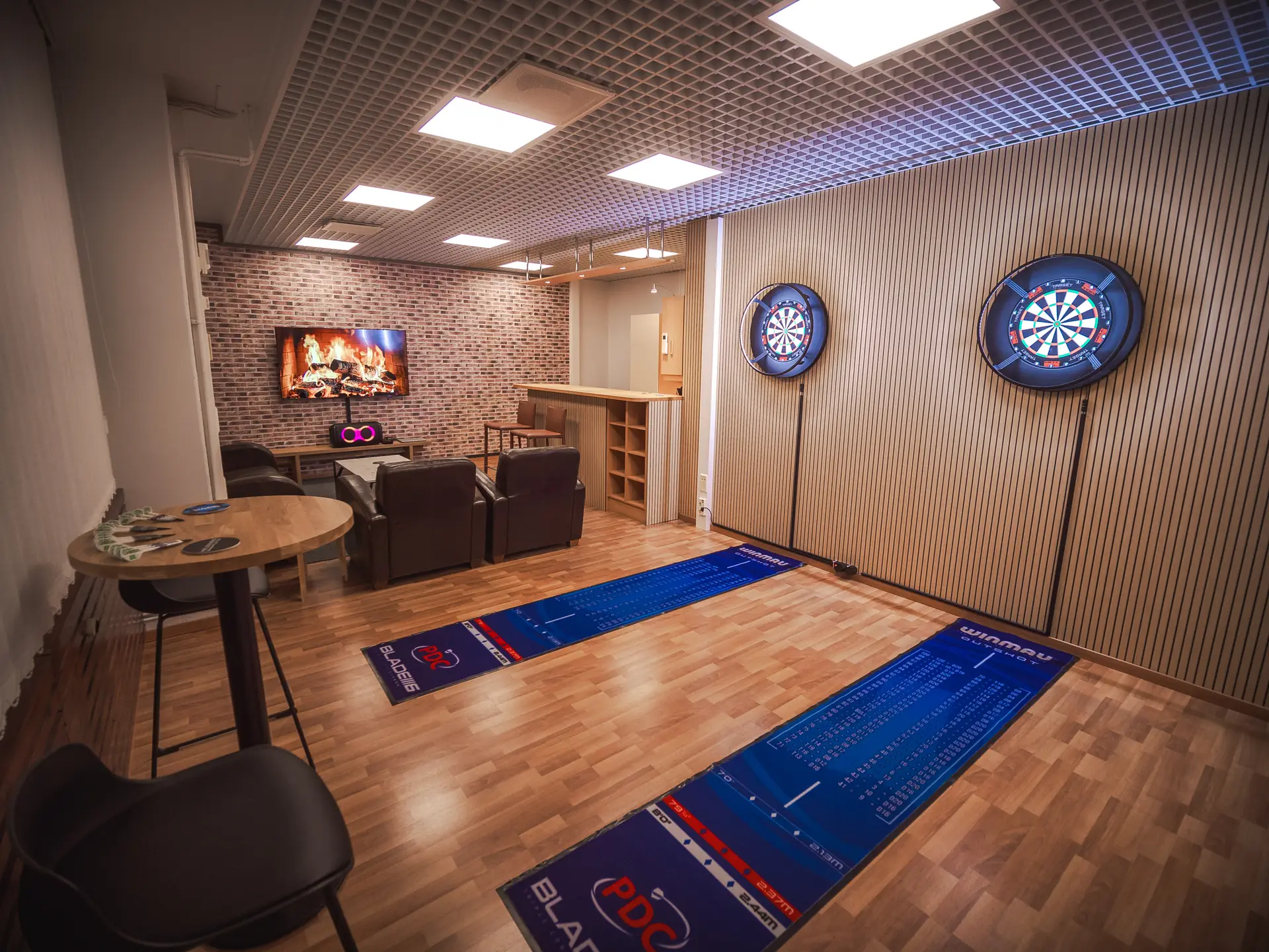 • Dartsheittopaikka kahdella taululla darts-tikkoineen