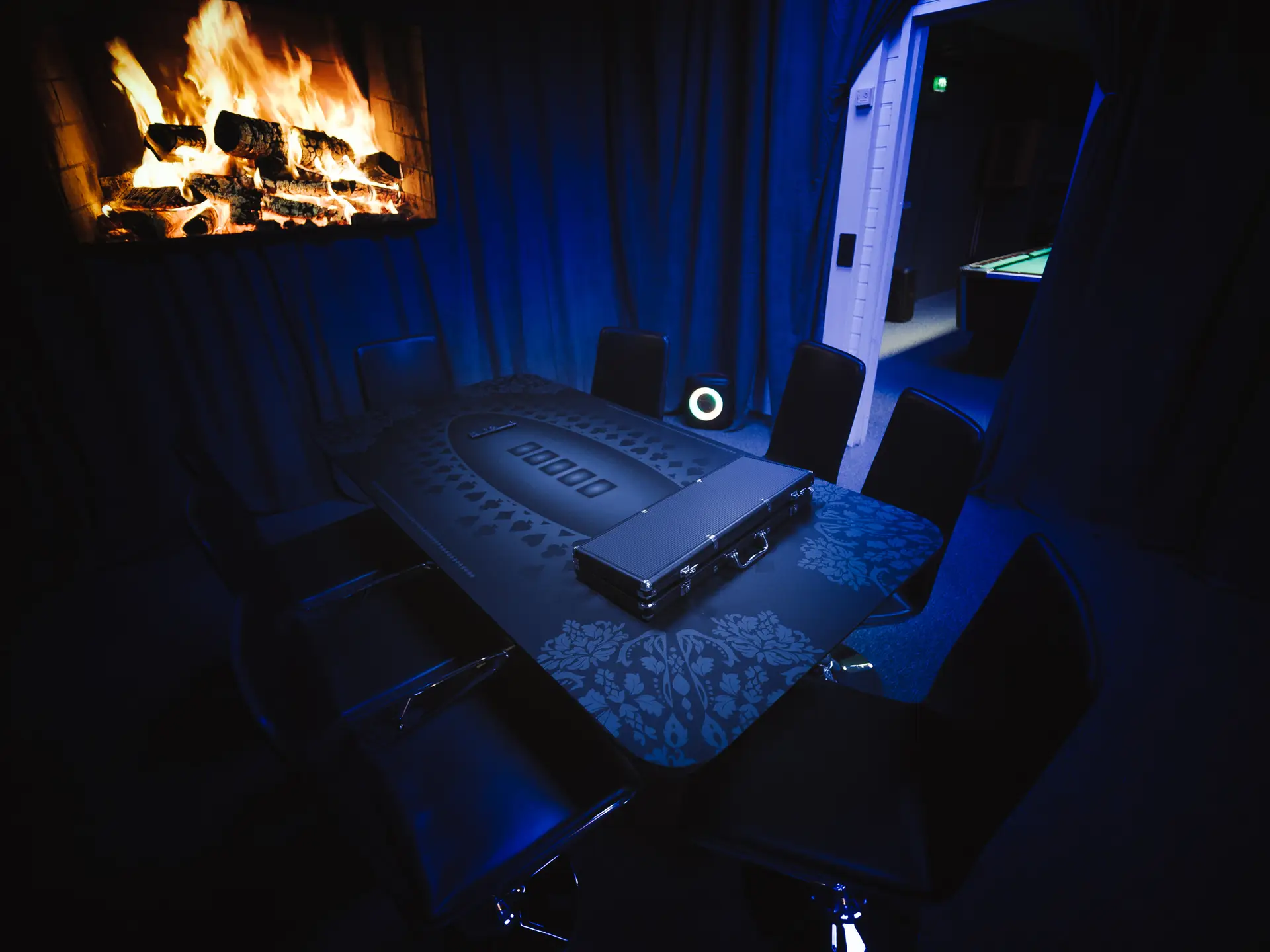 • 8-hengen pokeripöytä, sisältää pelikortit ja chipit